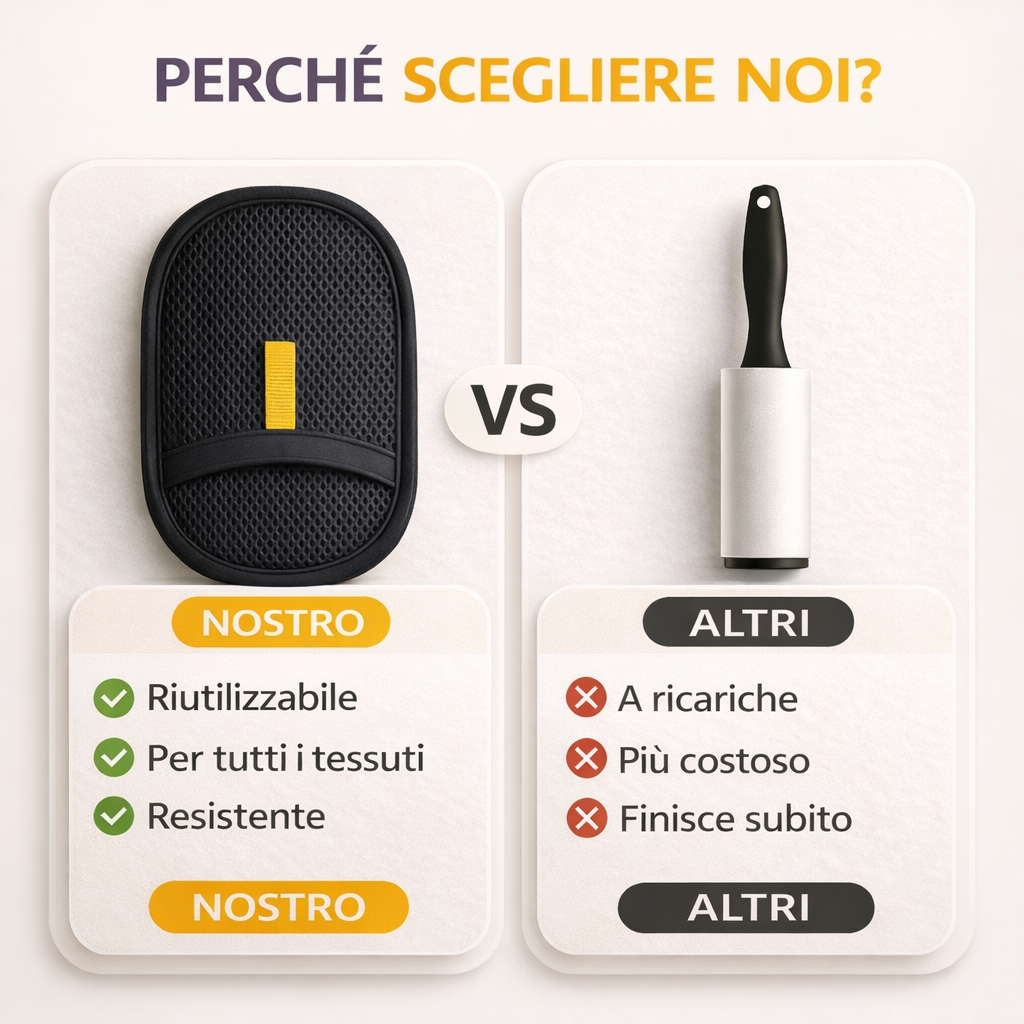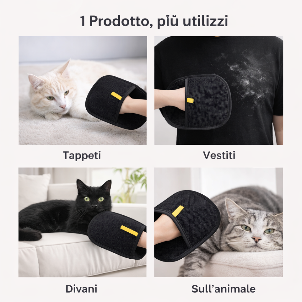 Rimuove anche i peli più ostinati da superfici difficili come velluto, cotone e tessuti delicati Non rovina i materiali e non lascia residui Ideale per chi vive con animali domestici e vuole una soluzione rapida, efficace e duratura
